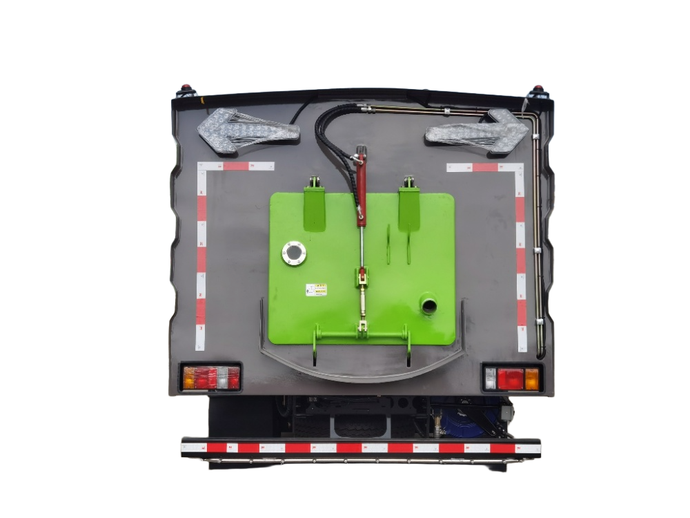 3) Rear spray: there is a spray rod under the rear bin of the cleaning car, and the spray rod is installed with multiple spray nozzle. Start the auxiliary engine and high pressure water pump, turn on the rear spray switch, start the chassis car forward, you can carry out spray dust, spray to reduce dryness operation.